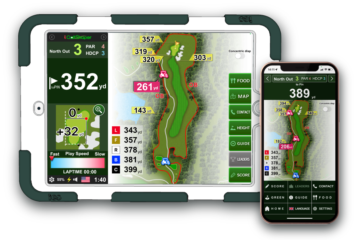 Golf Cart GPS, Navigation, Realtime Tracking, Geofencing, Realtime Messaging, pace of play reporting are some of the features. You can choose iPad or iPhone.